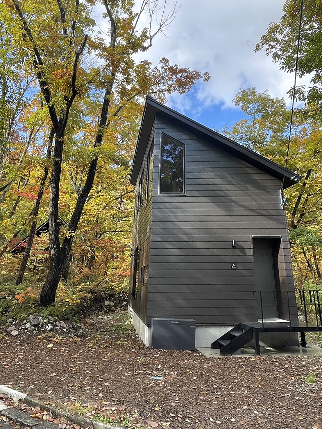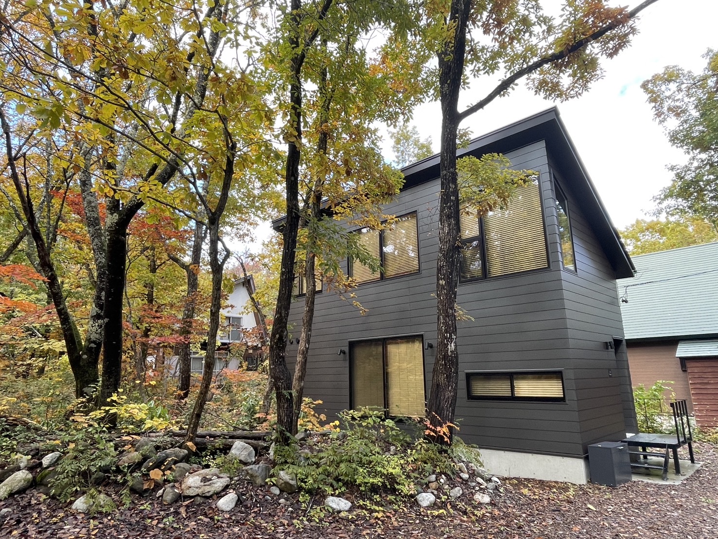 貸別荘 knot では、大きな窓から色づく森を眺めながら、